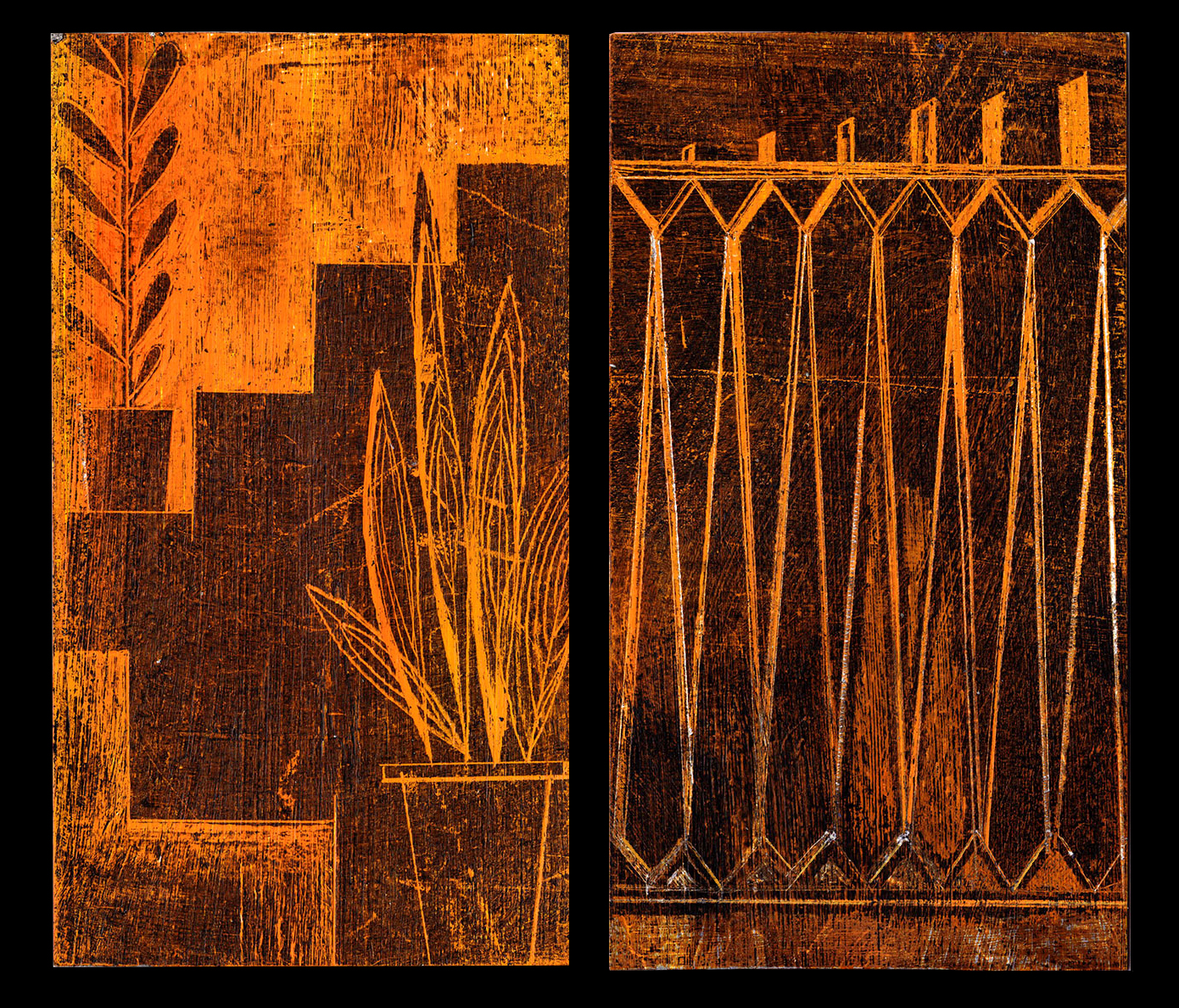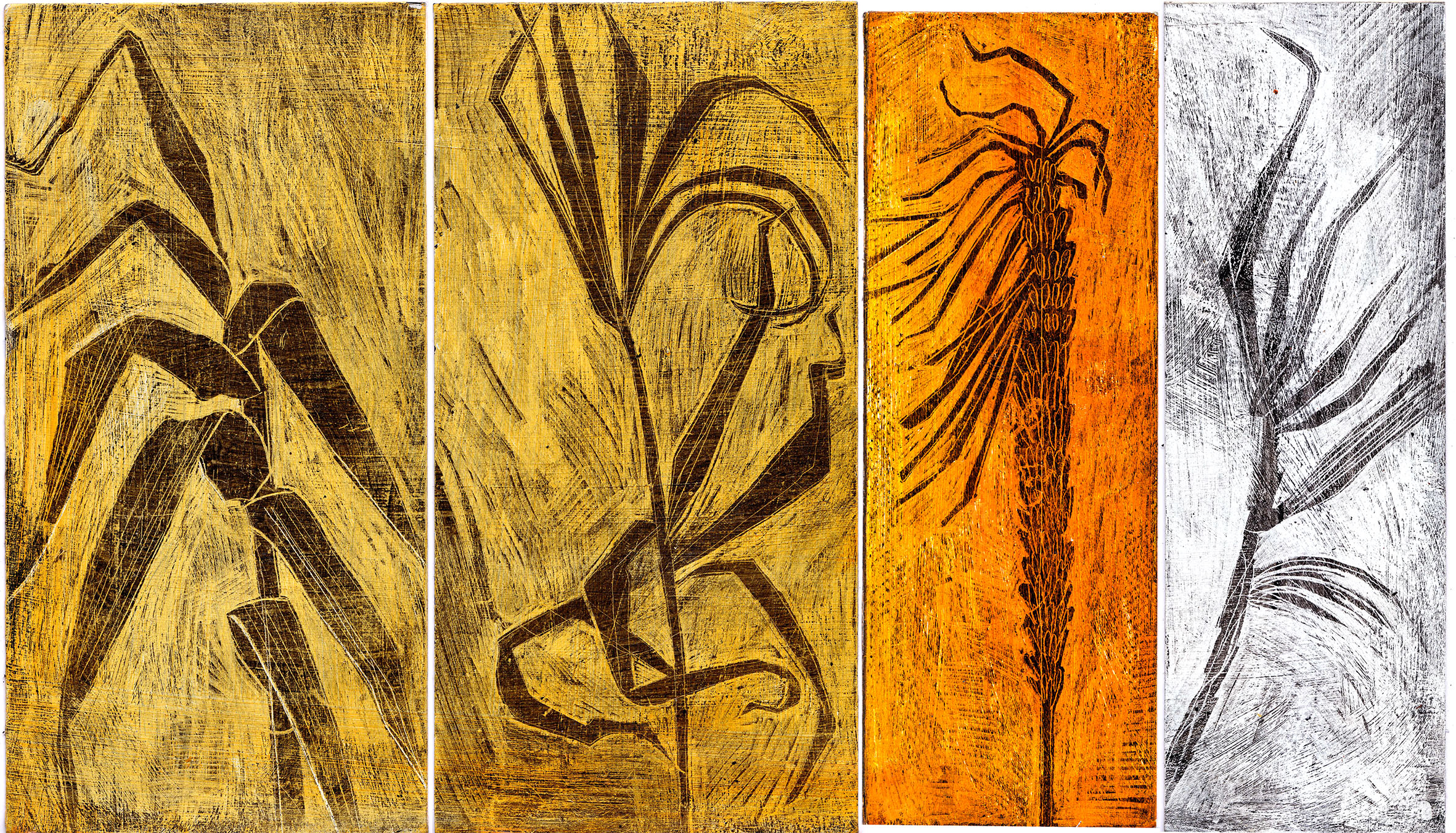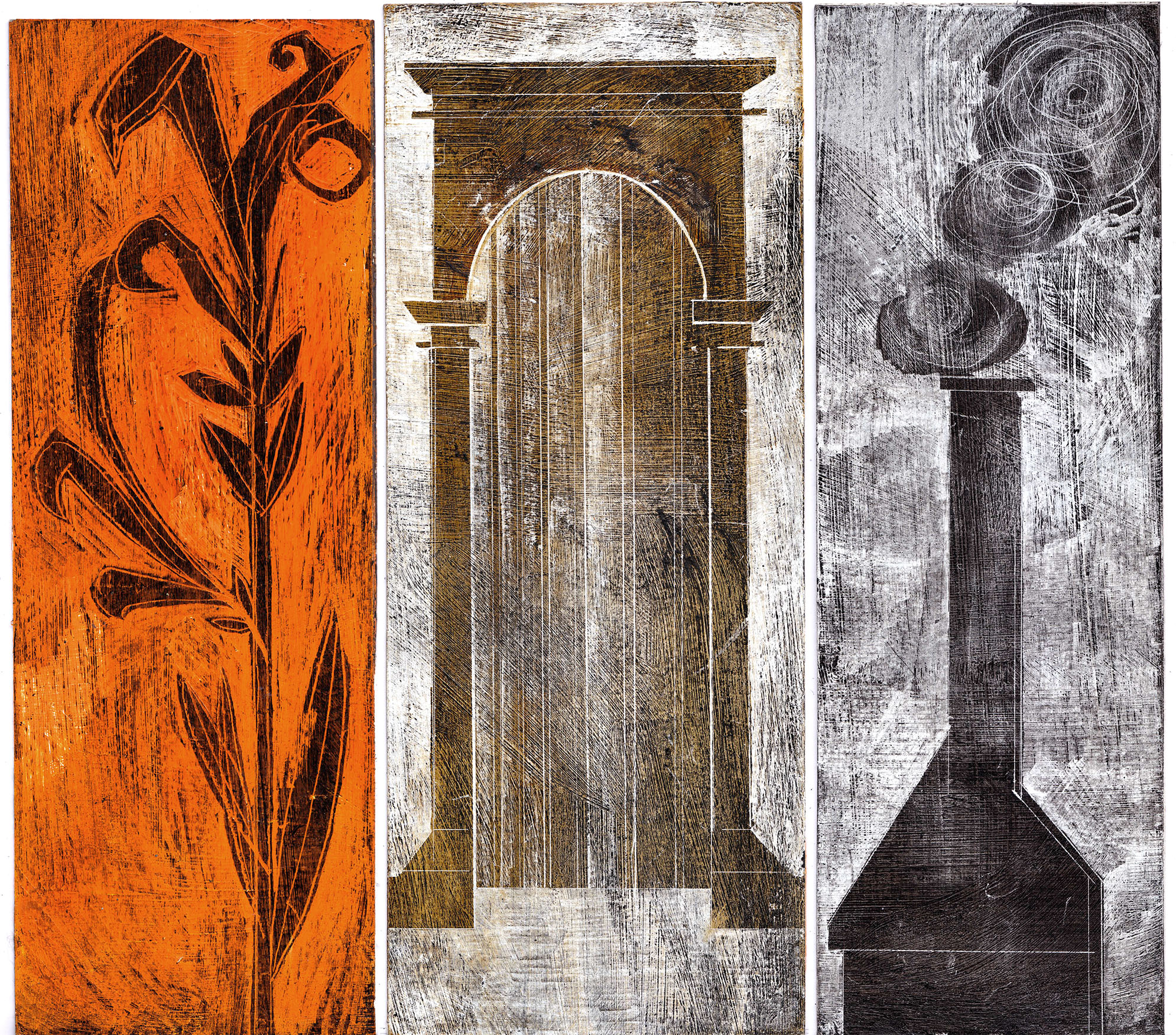 Scraperboard drawings made during a trip to the island of Madeira in January 2018